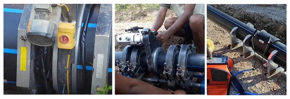 **Heat Fusion Connection:** Heat fusion connection is one of the most common and reliable methods for connecting HDPE pipes. This method uses a heating plate to heat the pipe ends to a certain temperature, softening the HDPE pipe. The softened pipe ends are then quickly butt-jointed with the fitting ends and held for a period of time to allow them to cool and form a strong connection. This results in high connection strength and excellent pressure resistance for the HDPE pipe.