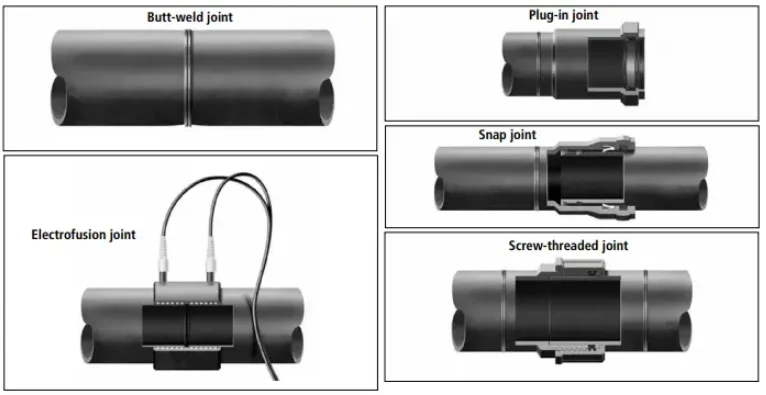 **Electrofusion Connection:** Electrofusion connection uses a specialized electrofusion machine to simultaneously heat the pipe and fitting ends, softening them before immediately butt-jointing them for a strong connection. This method is suitable for larger diameter HDPE pipes.