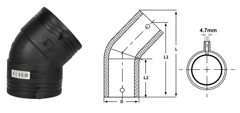 The HDPE Electrofusion 45° Elbow is designed for reliable directional changes in polyethylene pipeline systems. With built-in heating coils, it forms a strong, leak-proof fusion joint with HDPE pipes, ensuring excellent pressure resistance and long-term durability.